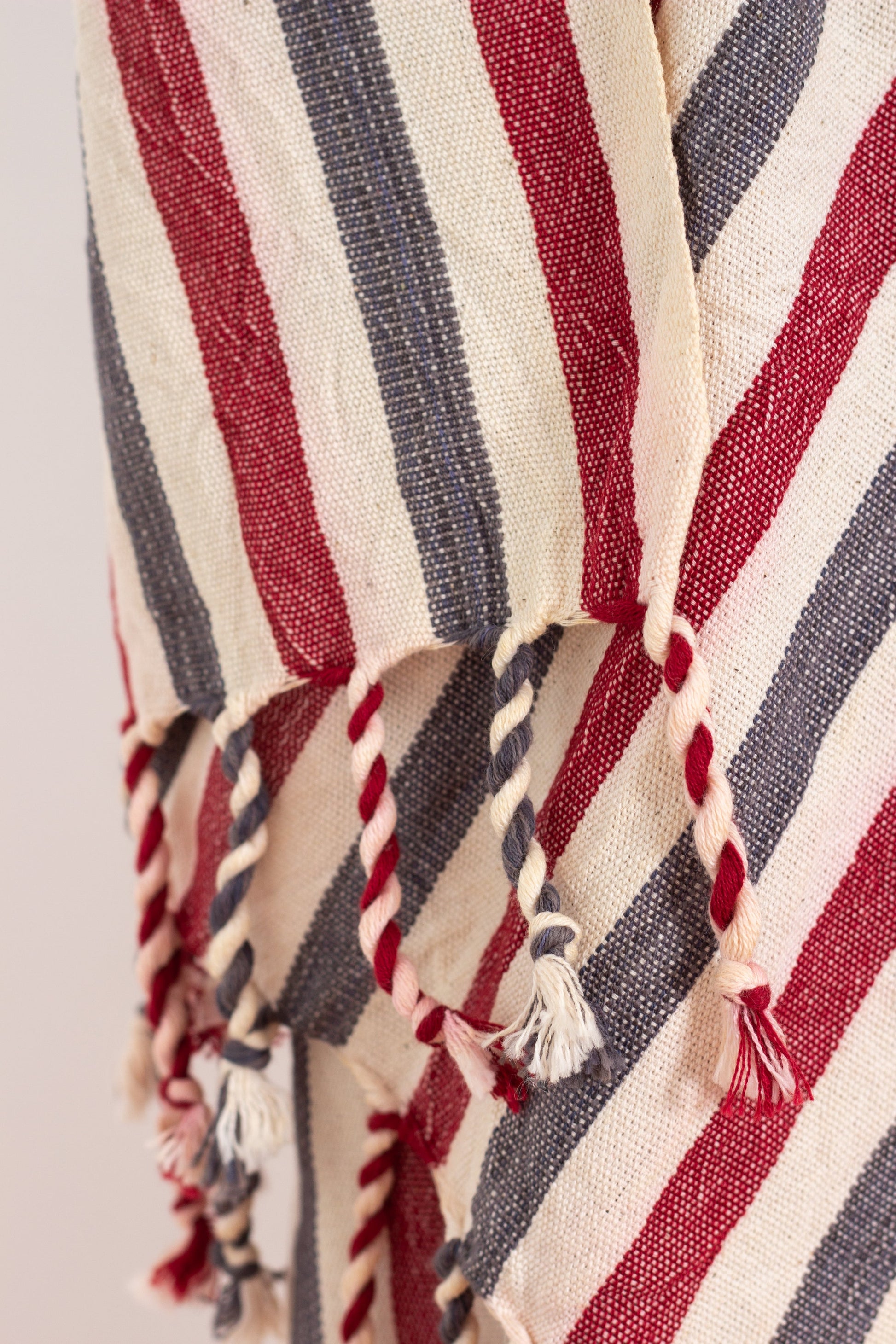 Transform your bathroom routine with our unique, hand-woven "Asi" towel. Made in Turkey with sustainable cotton and linen fibers, this towel boasts a one-of-a-kind striped design in beige, red, and gray. Not only is it soft and absorbent, but it becomes even more so with each wash. Use it as a traditional bath towel, or get creative and use it as a beach wrap, baby cover, picnic blanket, or even a stylish shawl. With its durability and multi-use functionality, this towel is perfect for everyday use or for special occasions. Lightweight and breathable, it's the perfect addition to any bathroom. Treat yourself or gift it to a loved one and make a difference in the world with this premium, eco-friendly towel."