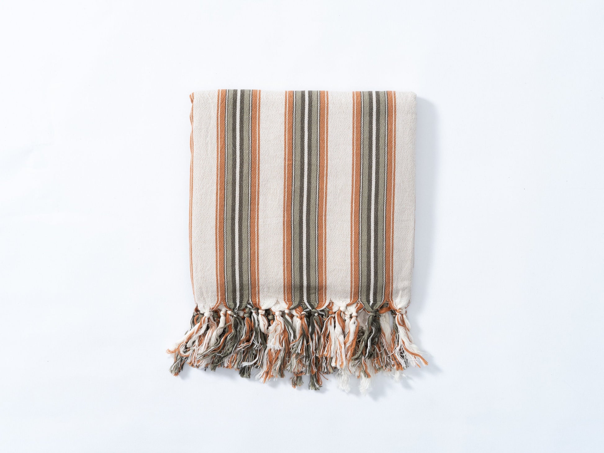 Vibrant Design: Featuring a captivating blend of green and orange hues, the Attuda Linen Towel brings a burst of color to your bath or beach experience.