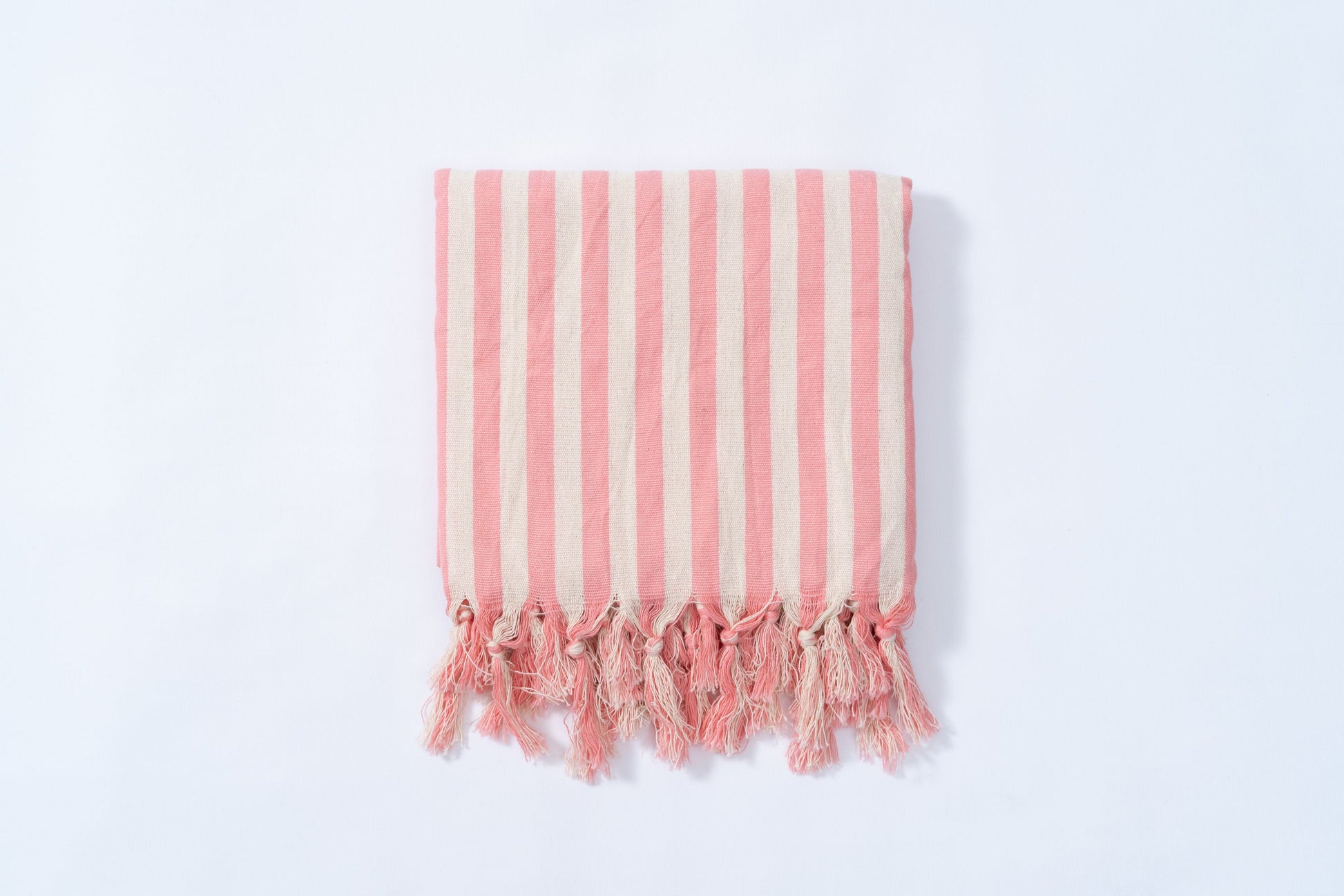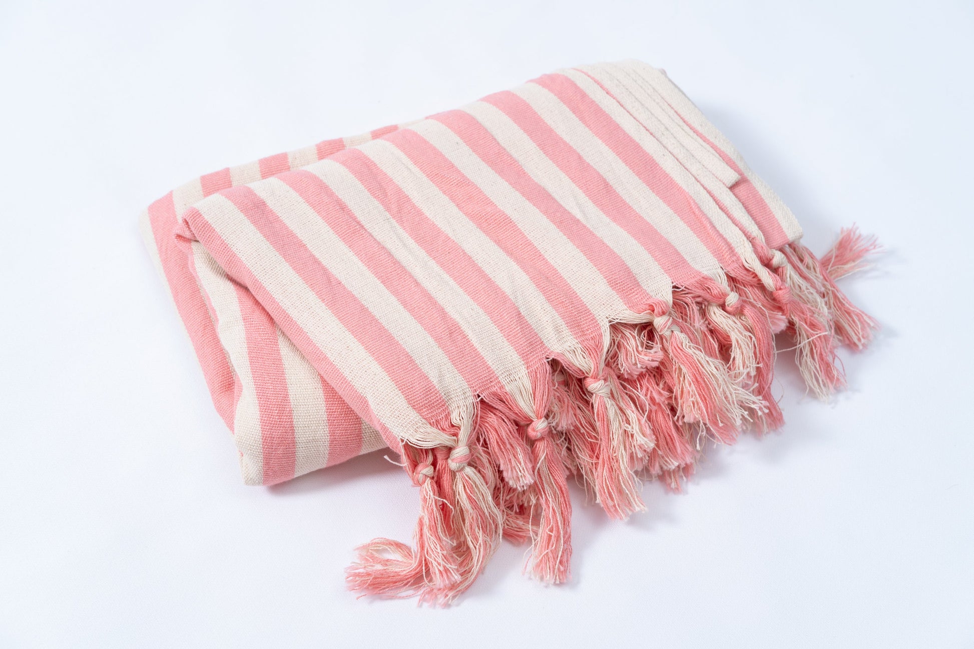 Elevate your beach or bath experience with our enchanting "Barbie Pink Towel." Crafted from a luxurious blend of cotton and linen, this Turkish towel boasts a charming white and pink striped design that exudes both playful whimsy and timeless elegance.