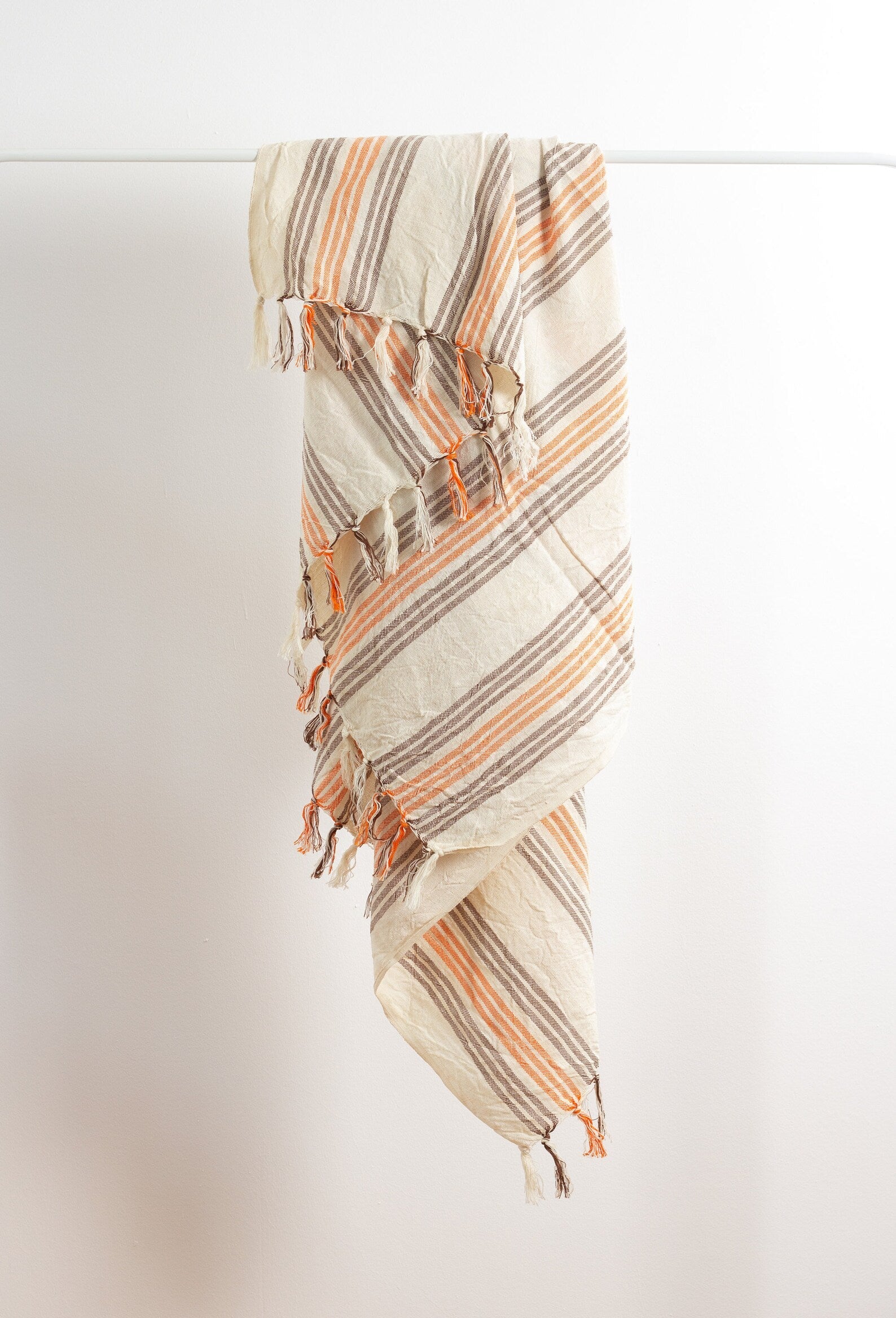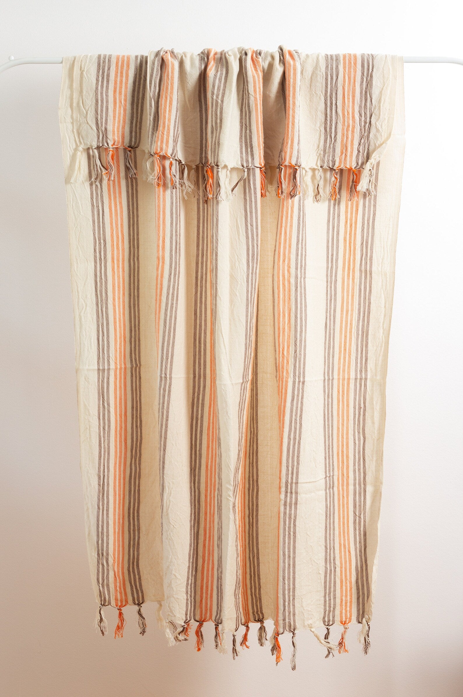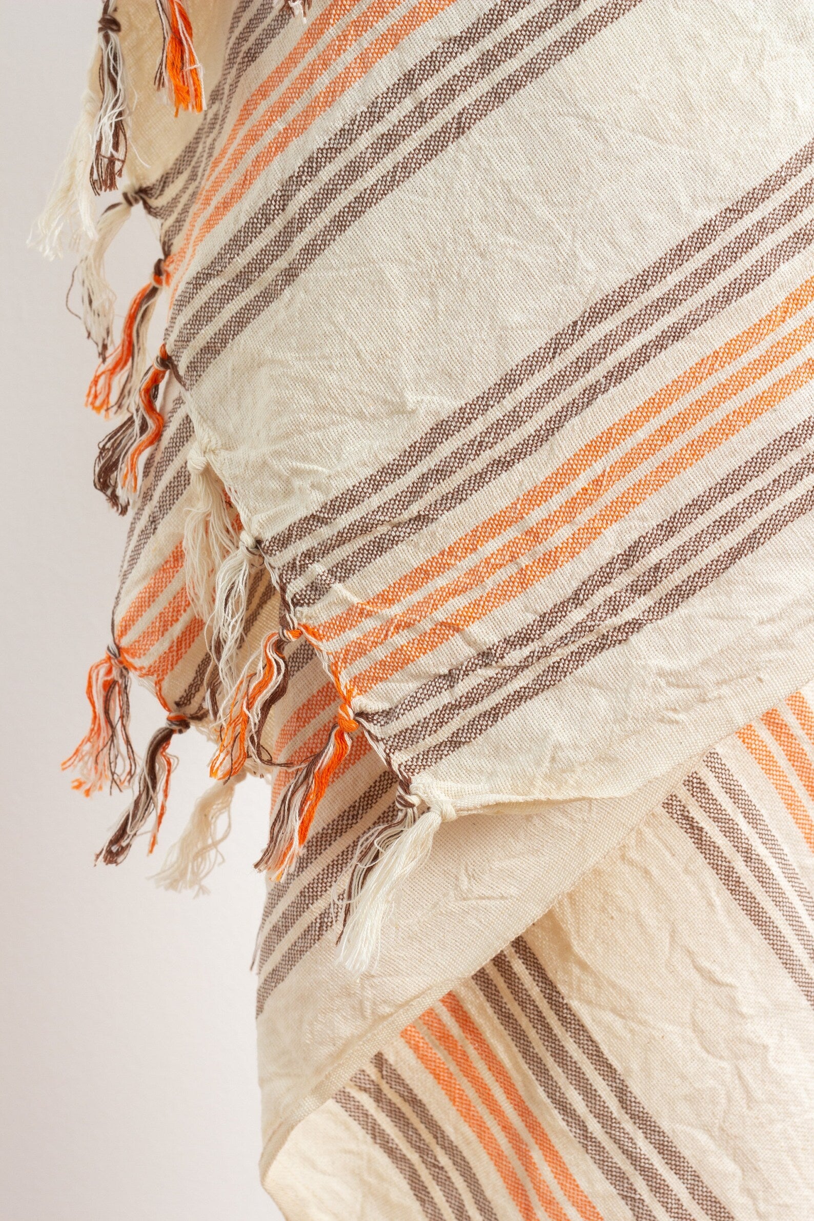 Experience the ultimate in comfort and style with our hand-woven Bugday towel. Made from a premium cotton-linen blend, this towel is not only ultra-soft and absorbent, but also eco-friendly. The unique combination of beige, brown, and orange stripes gives it a bohemian-inspired look that is sure to elevate any space. Whether you're lounging at the beach or drying off after a shower, the Bugday towel is the perfect choice for both form and function.