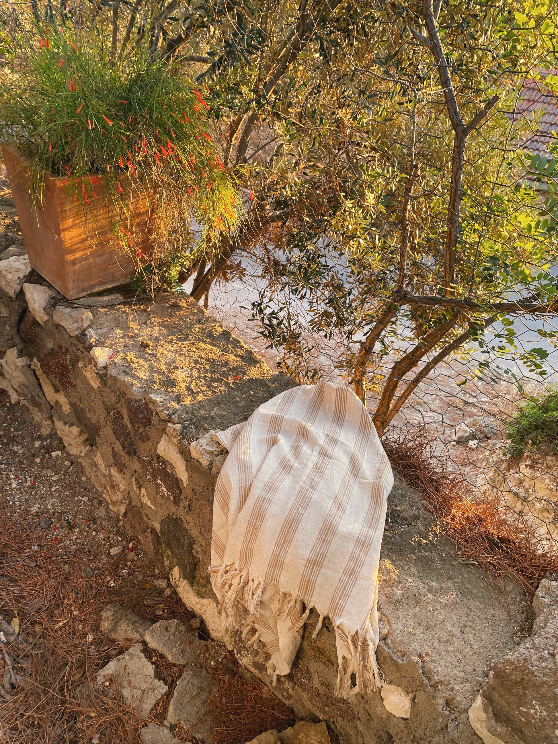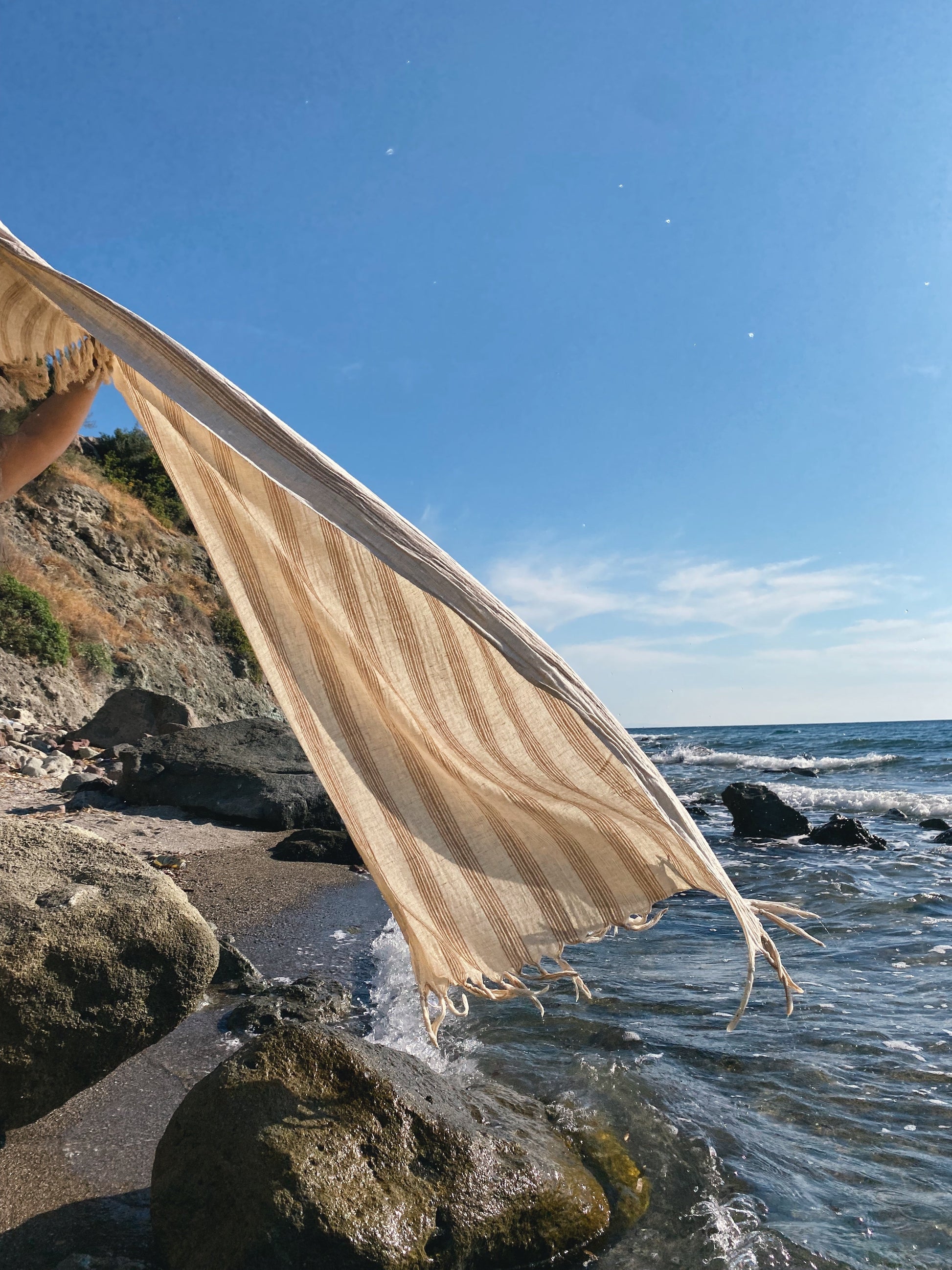 Introducing the Ciragan towel, a beautifully crafted piece of art that combines luxury and functionality. Made from the finest cotton and linen blend, this towel is not only soft to the touch but also highly absorbent, making it perfect for use after a refreshing shower or dip in the pool. The unique stripes in beige and light brown make it a stylish addition to any bathroom. The oversized design of this towel makes it versatile and can be used as a beach wrap, picnic blanket or even a shawl. Indulge in luxury and comfort with the best-selling Ciragan towel.