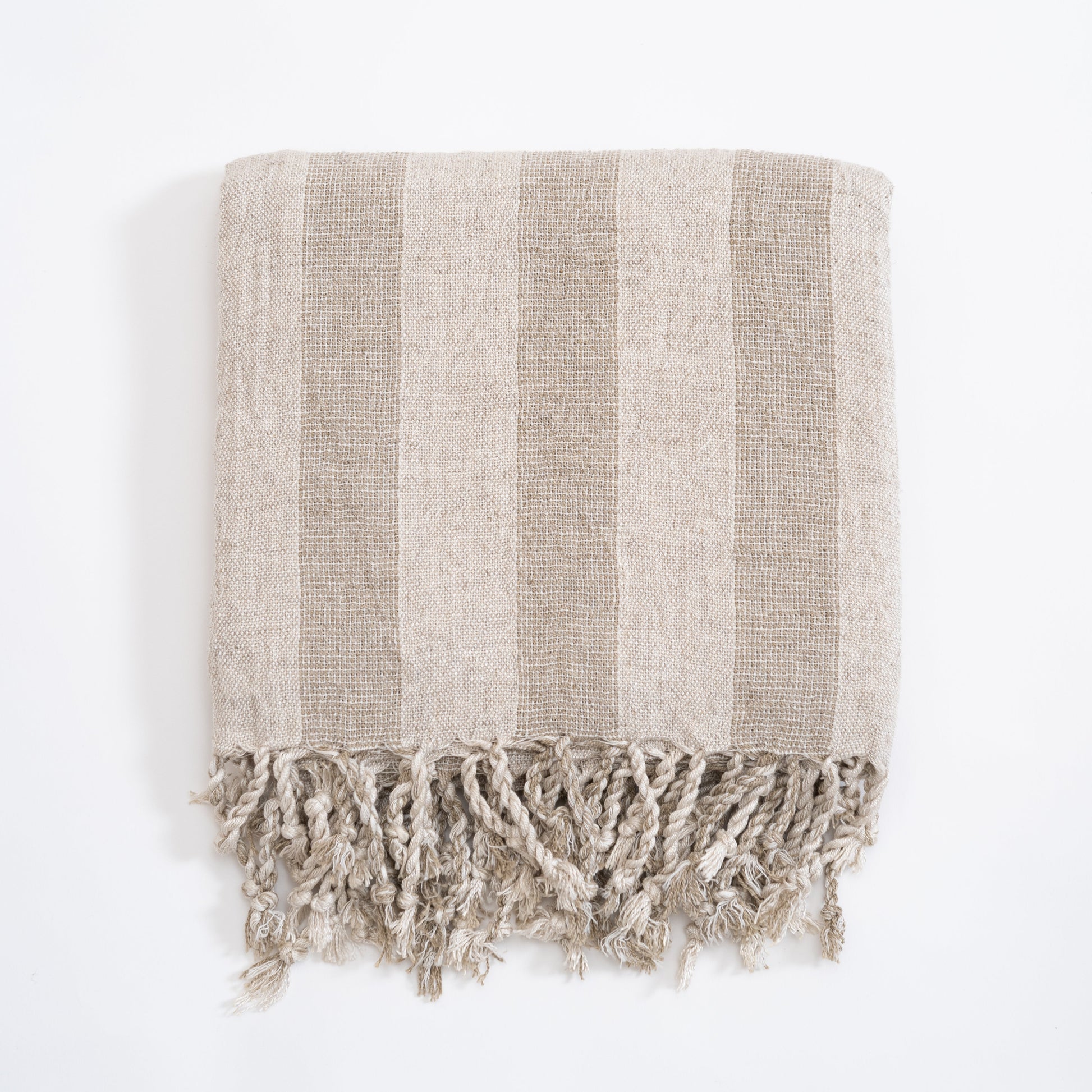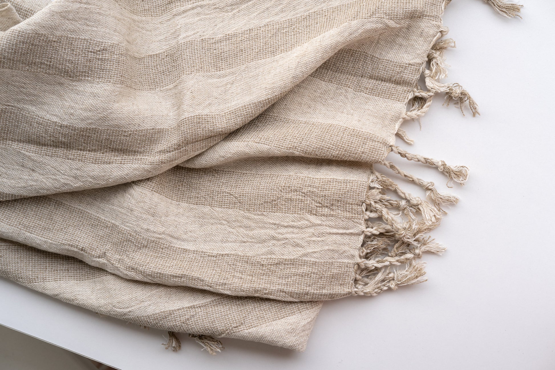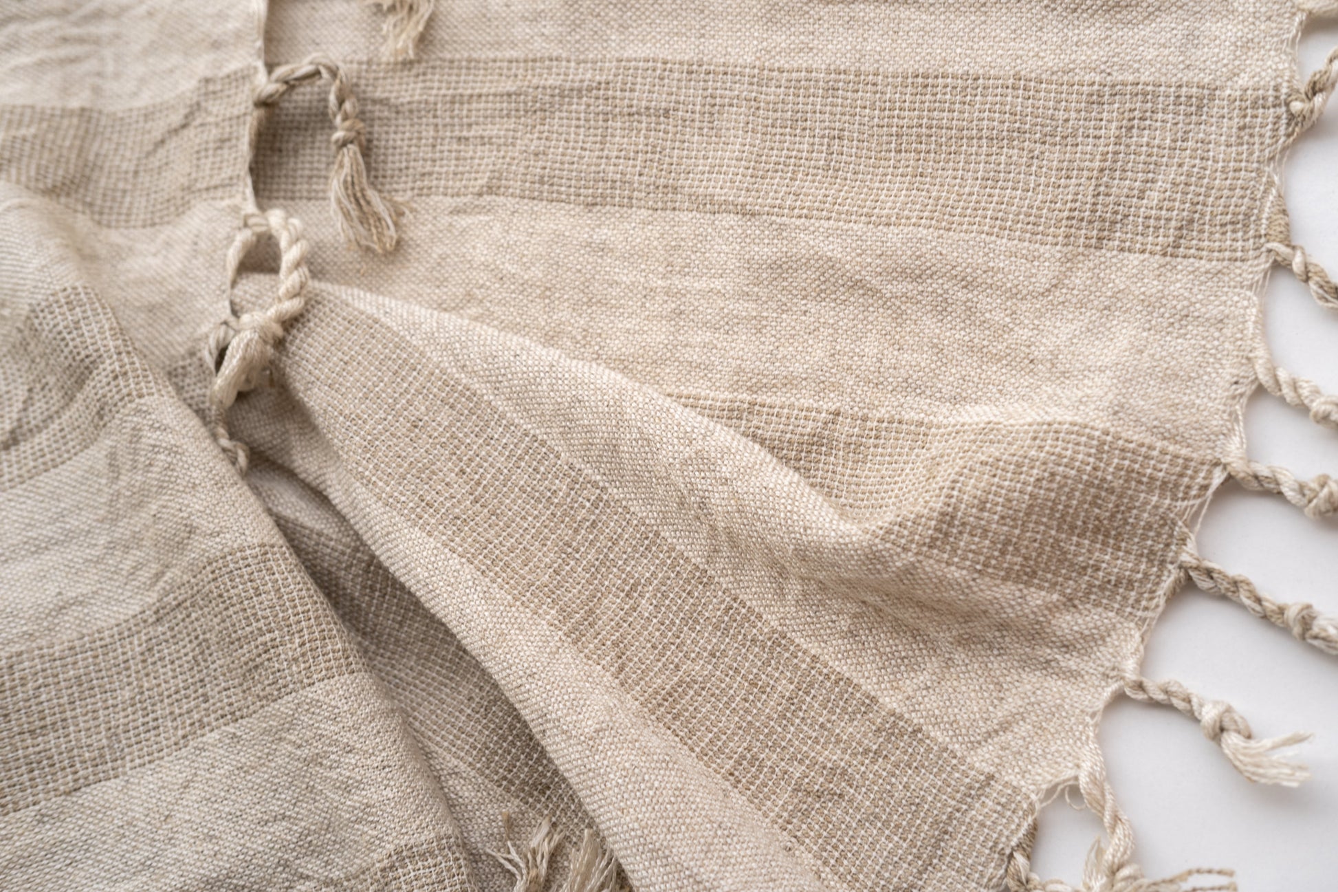 Introduce the Harran Towel, a luxurious blend of beige stripes in different tones that add a bohemian feel to your bathroom decor. Made with premium raw linen, this towel is not only absorbent, but also durable and long-lasting. Perfect for everyday use, it's lightweight and quick-drying, making it a convenient choice for your busy lifestyle. The versatile design can also be used as a beach wrap, picnic blanket, or even a shawl for those chilly evenings. Indulge in the ultimate luxury with the Harran Towel.