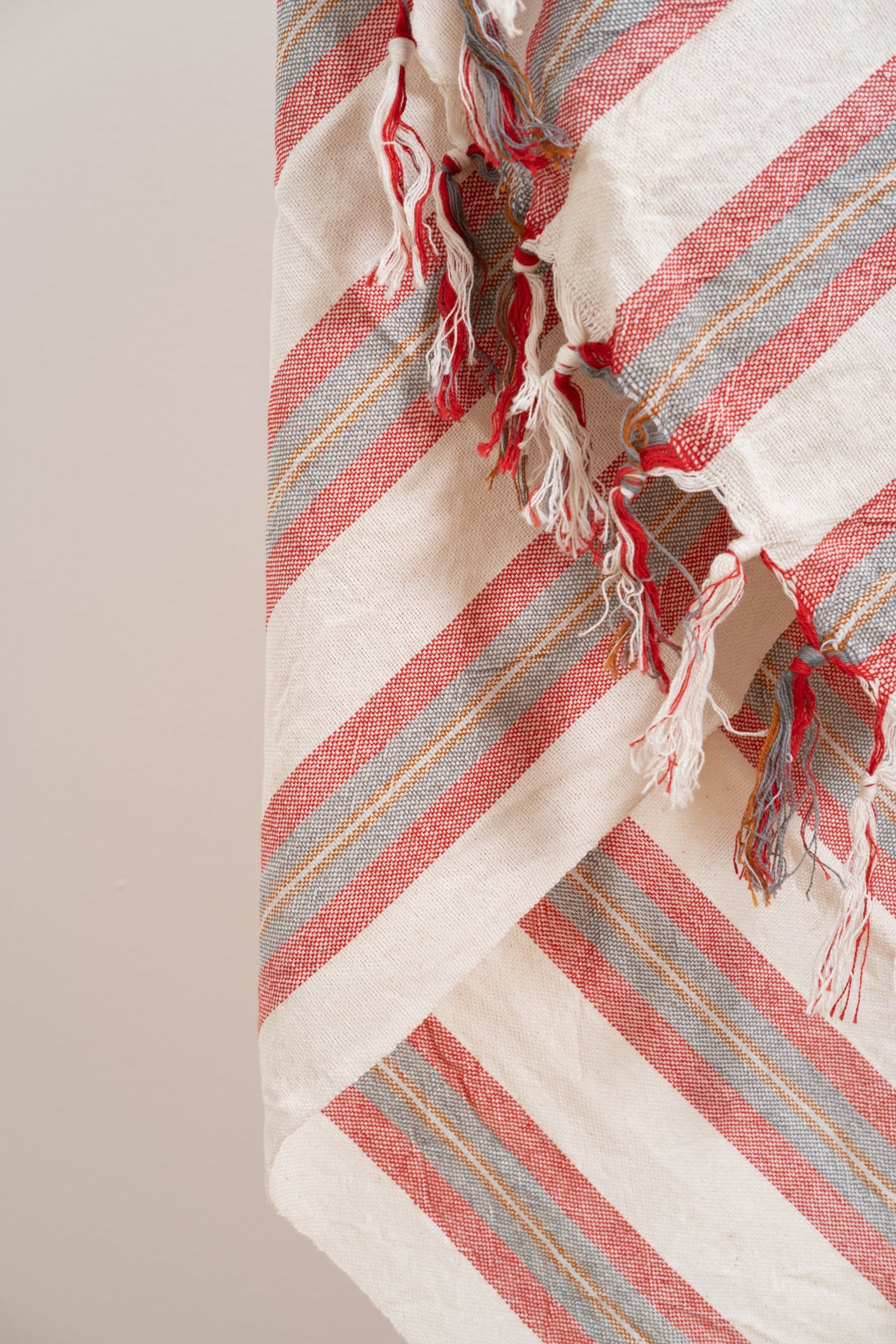 Introducing our Hud Hud Towel, crafted from a luxurious blend of cotton and linen. The towel features a unique color palette, with beige, brown, and rust stripes that add a touch of warmth and elegance to any bathroom decor. The soft, absorbent material is perfect for drying off after a shower or bath, and its quick-drying properties make it ideal for use at the beach or pool. The towel's multifunctional design also makes it great for use as a picnic blanket, tablecloth, or even as a shawl. With its heavy usage capabilities, our Hud Hud Towel is designed to last for many years, reducing waste in your household. Upgrade your bathroom essentials with this stylish and functional towel.