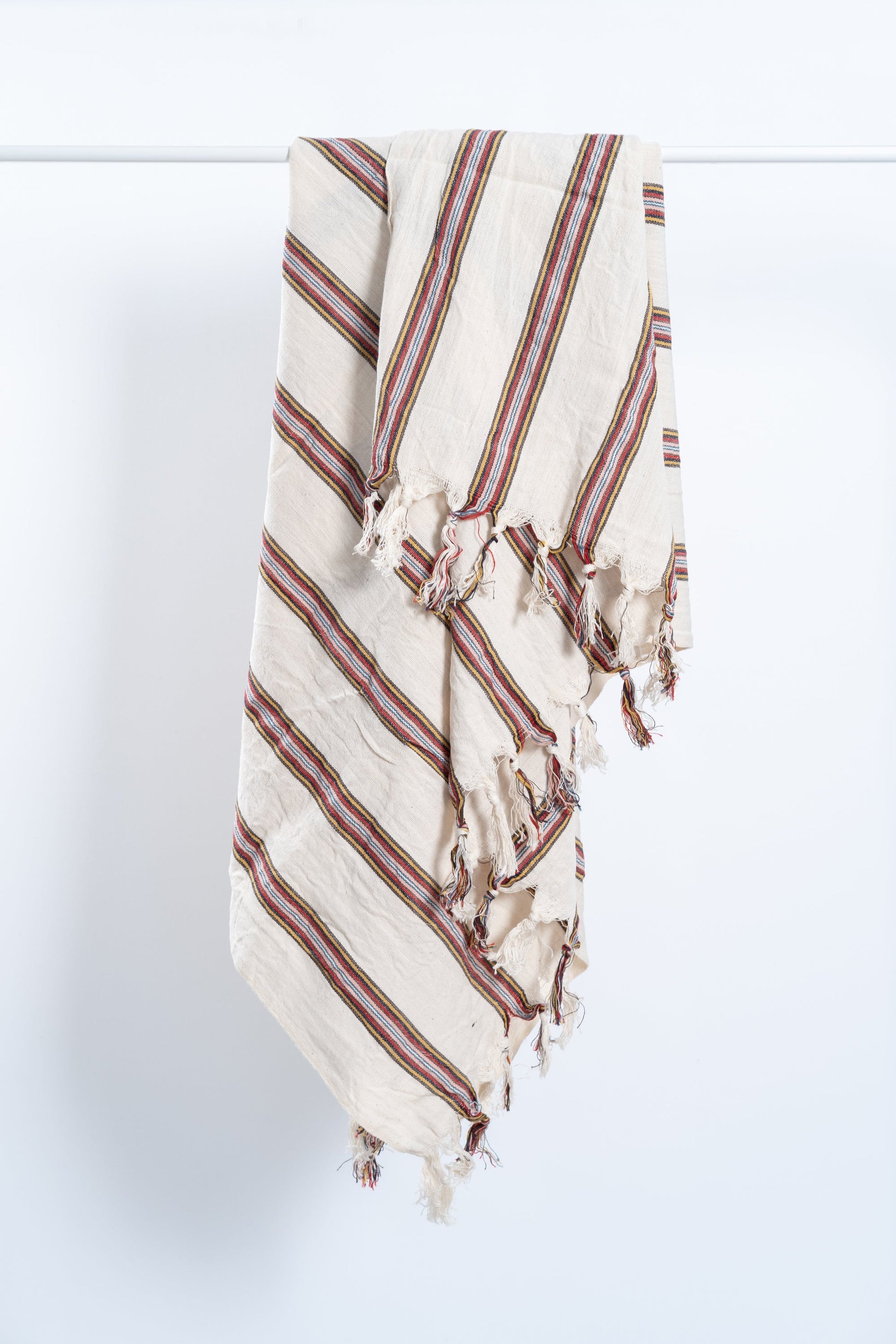 Elevate your beach or bath experience with our exquisite "Lodos Towel." Crafted from a luxurious blend of cotton and linen, this towel features a captivating cream base adorned with vibrant red, orange, and pink stripes, creating a stunning visual masterpiece that encapsulates coastal elegance.