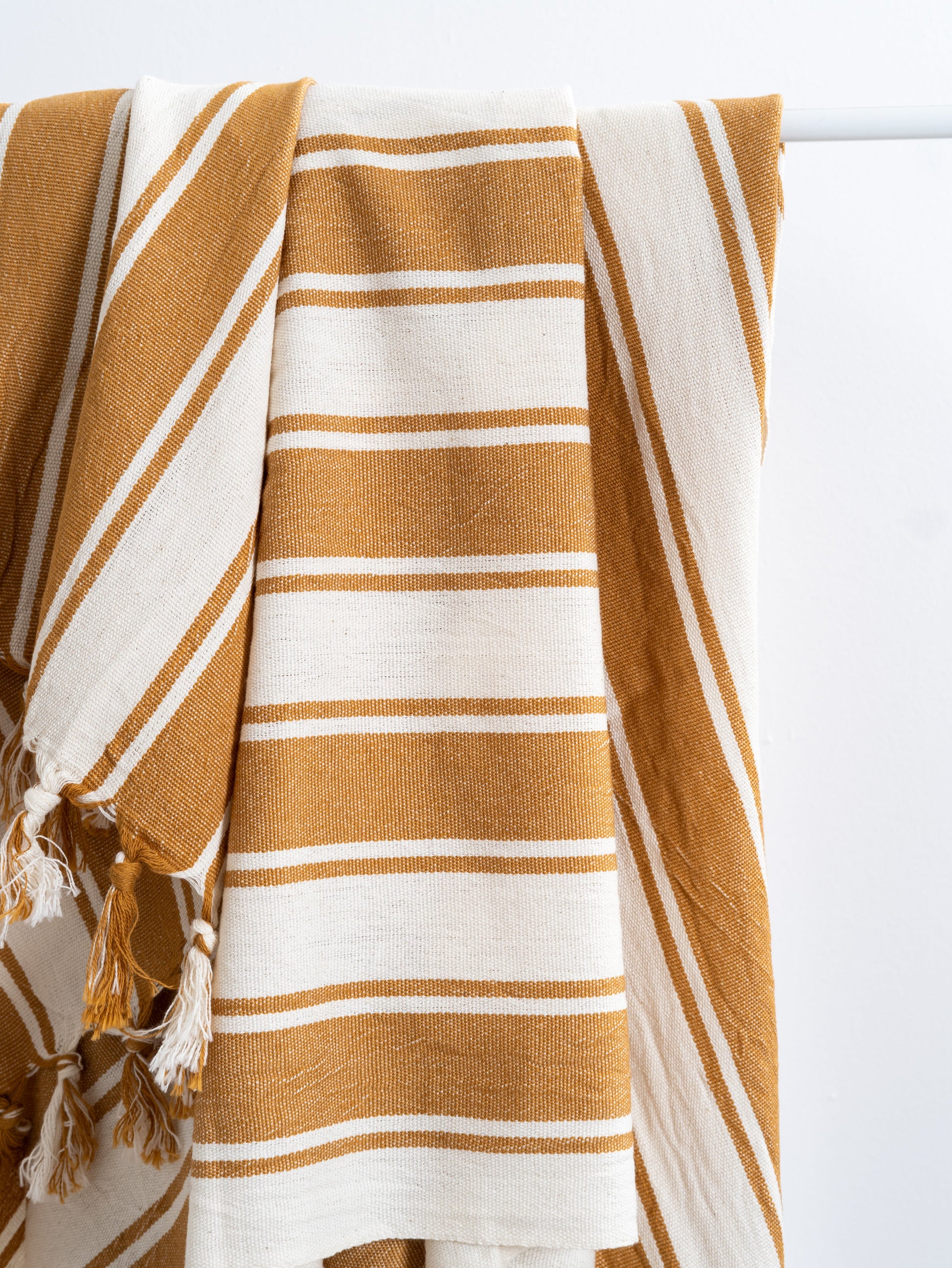 Introducing the Lotus Towel - a luxurious and unique addition to your bathroom decor. Made of premium quality, this towel features rust and beige stripes that add a touch of elegance and style. The perfect blend of comfort and durability, the Lotus Towel is not only soft and absorbent but also gets softer with each wash. Use it as a bath, hand, or beach towel, or as a decorative accent in your living space. Add a touch of luxury to your daily routine with the Lotus Towel.